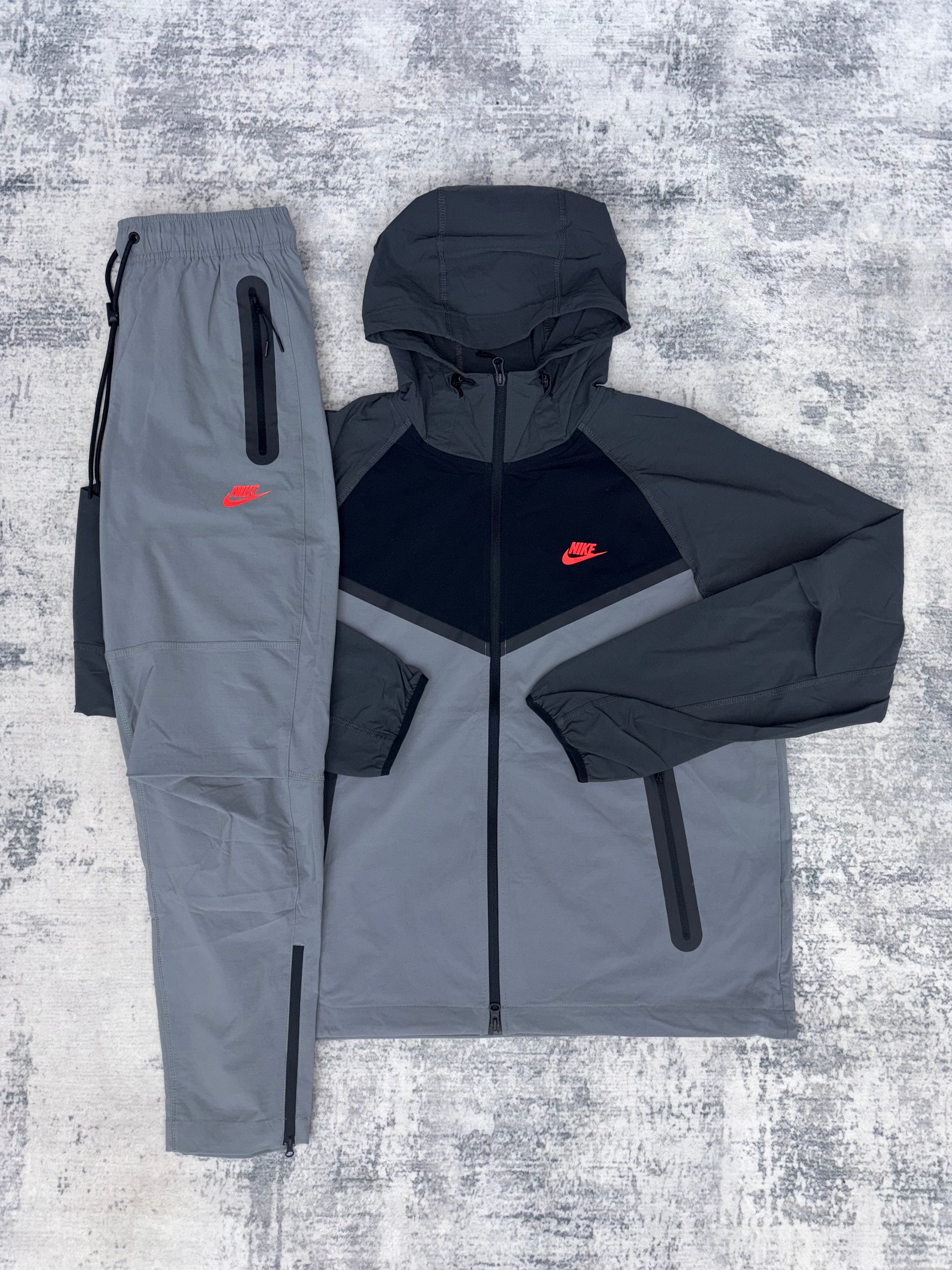 Nike Tech Woven Tracksuit - Charcoal/Crimson